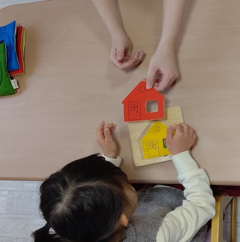 理学療法士や言語聴覚士といった機能訓練士による個人のレベルに合わせたアプローチに加え、音楽や美術、図画工作の専門講師による指導を提供しているため、専門的な芸術プログラムを習い事教室に通わずとも受講できる環境です。特に音楽活動では、早期の発達段階から基礎を学び、本物の楽器に触れることで感受性を育みます。