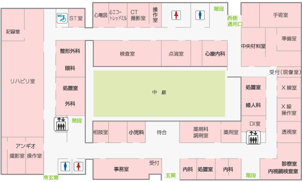 診療科目:内科・循環器内科・消化器内科・外科・整形外科・婦人科 小児科・皮膚科・リハビリテーション科・心療科・脳神経内科 ・放射線科